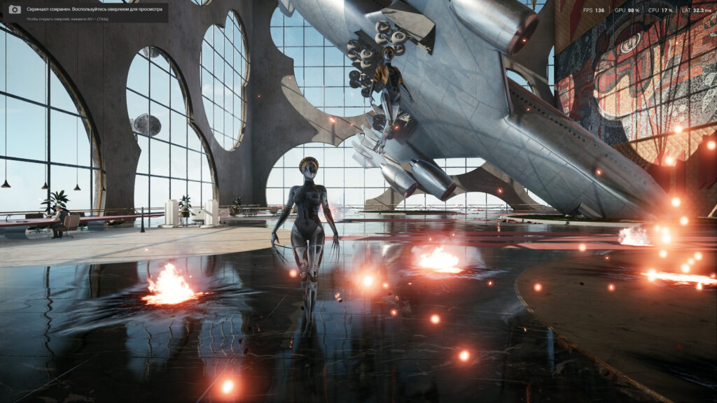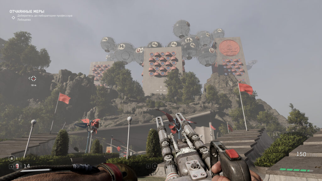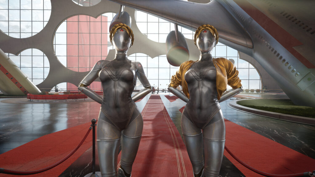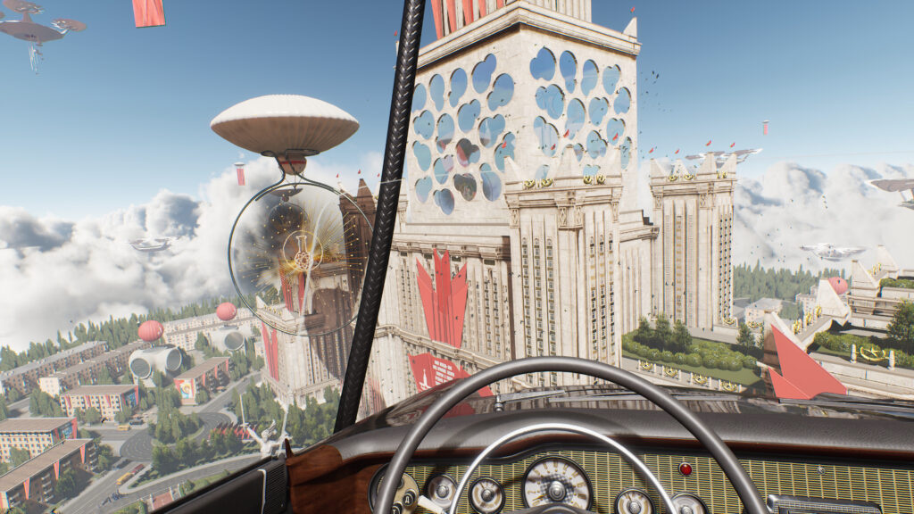 Визуально игра просто великолепна. Огромные советские павильоны с мозаиками и лепниной, яркие агитплакаты, ретрофутуристические машины — всё это создаёт ощущение настоящего живого мира. Художники Mundfish явно вдохновлялись советским конструктивизмом и BioShock одновременно, и у них получилось что-то уникальное. Просто гулять по этому миру — уже отдельное удовольствие.