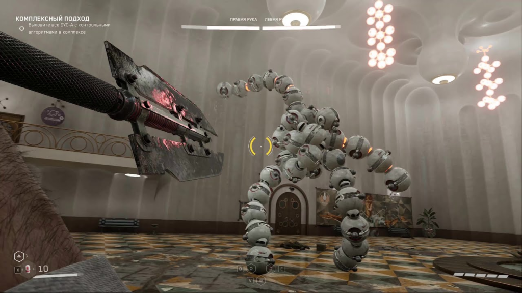 - В первом бою (Белый колосс) используйте люстры на потолке: роняйте их на босса, чтобы застанить его, и наносите колоссальный урон по слабым точкам.