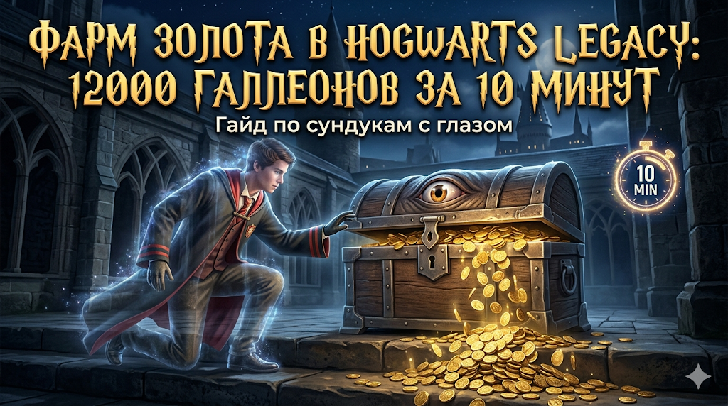 Главный источник быстрого дохода — это особые Сундуки с глазом (Disillusionment Chests), которые разбросаны по замку Хогвартс и деревне Хогсмид. Каждый такой сундук содержит ровно 500 галлеонов.