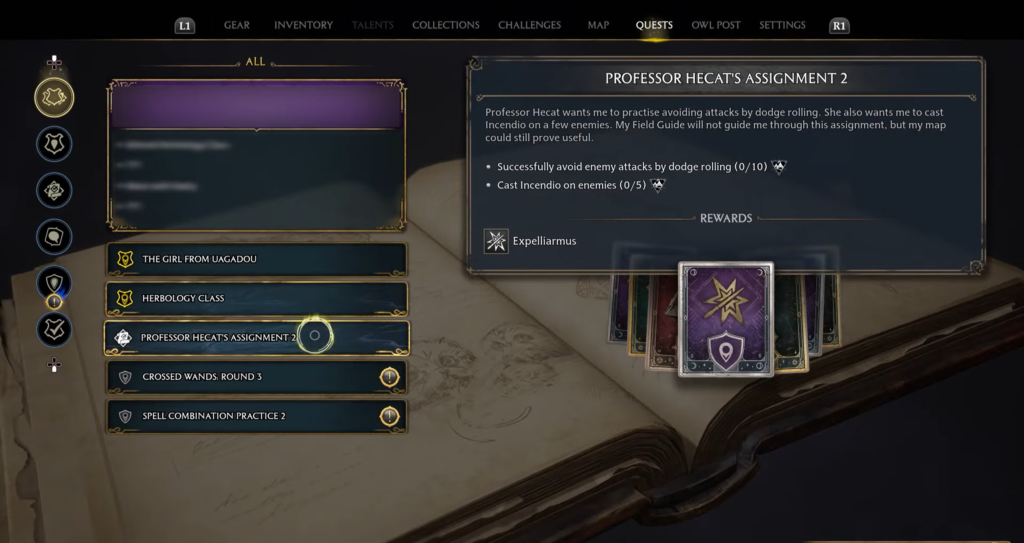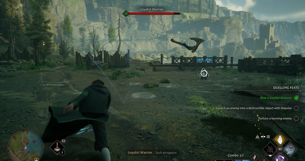 Позволяет перехватывать и швырять во врагов их же оружие. Идеально комбинируется с заклинанием Экспеллиармус (открывается у профессора Гекат после квеста «Фолианты и невзгоды»). Выбиваете топор из рук гоблина и мгновенно метаете его обратно.