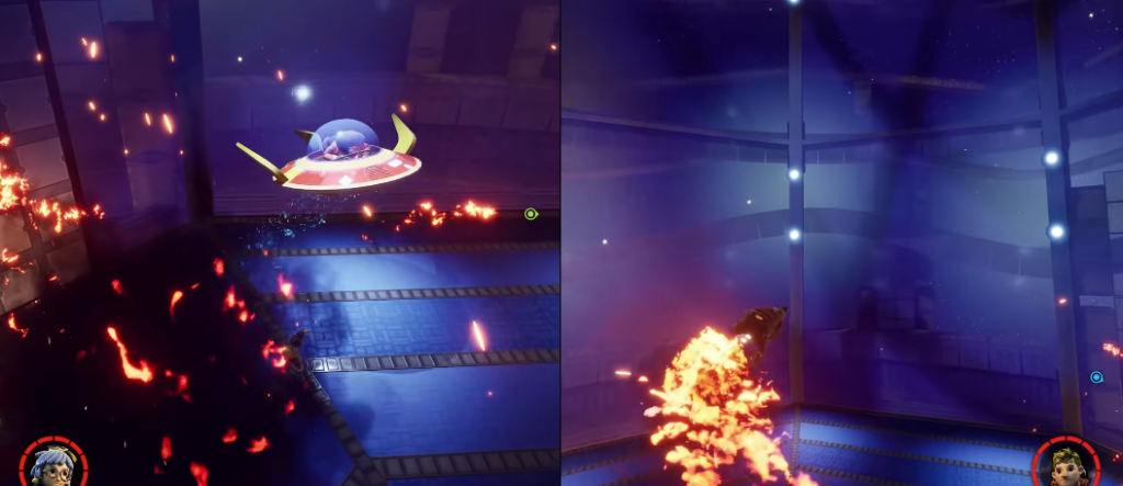 - Игрок, отвлекающий босса, должен бежать за приподнятой платформой.