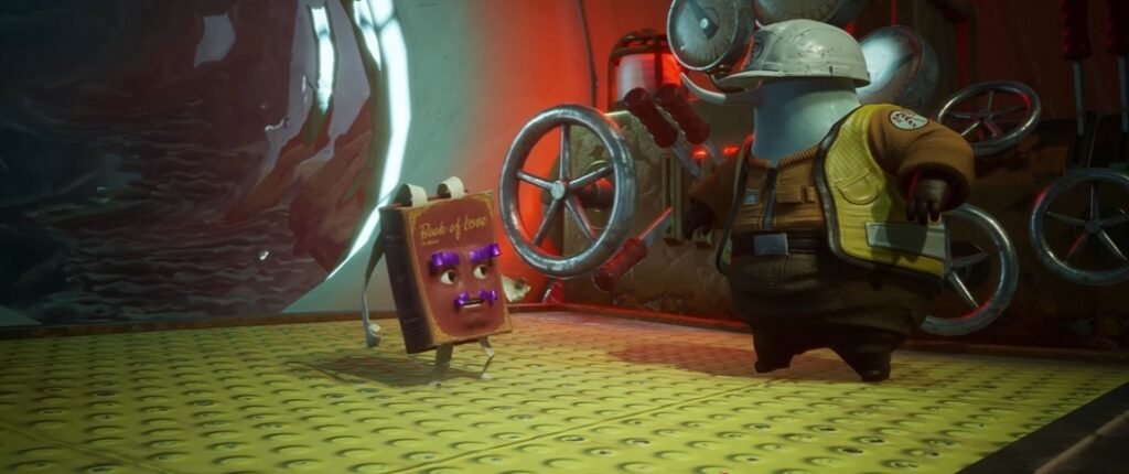 Красный маршрут приведет вас к большой капсуле/глобусу, где один игрок открывает вход, а другой поднимается на внутреннюю платформу, чтобы дотянуться до кнопки.