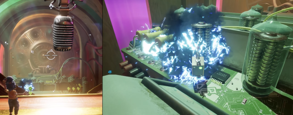 Внутри музыкального автомата Коди опустится в нижнюю часть и возьмет портативный динамик. Мэй может кричать в микрофон, расположенный выше, и этот крик будет передаваться через динамик, который держит Коди, чтобы уничтожить или убрать препятствия на пути печатной платы.