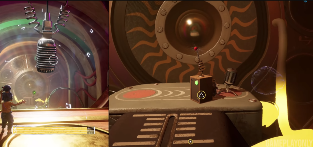 Вы попадете в последовательность, где Коди должен активно использовать тарелку в качестве щита, стоя на платформе, которую нужно управлять голосом Мэй. Четыре микрофона соответствуют стрелкам направления платформы, поэтому Мэй перемещает Коди, крича в микрофон, соответствующий нужному направлению.