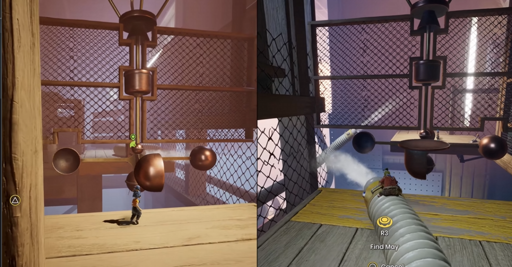 После перехода второй игрок берет шланг и использует поток воздуха, чтобы переместить платформу для своего партнера.