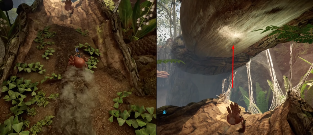 Вскоре после этого вы будете использовать воду и ветер, чтобы продвигаться вперед, и получите пауков-верховых животных для обоих игроков. Пауки могут ползать по деревьям с более светлой корой и висеть вниз головой, стреляя паутиной вверх. Если вы попали в тупик, посмотрите вверх и вокруг в поисках точки для паутины или обходного пути по коре, а не думайте, что вы промахнулись при прыжке.