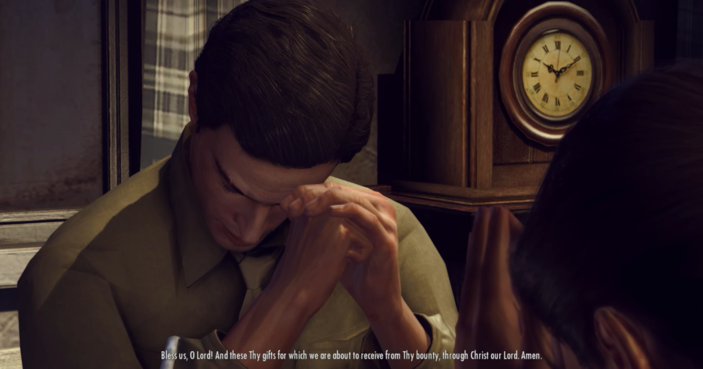 В скромном семейном доме мать и сестра Вито тепло встречают его. Затем следует домашний ужин и молитва — трогательный момент нормальной жизни после многих лет войны. Пообщайтесь с членами семьи, чтобы узнать о том, с какими трудностями они столкнулись во время вашего отсутствия.