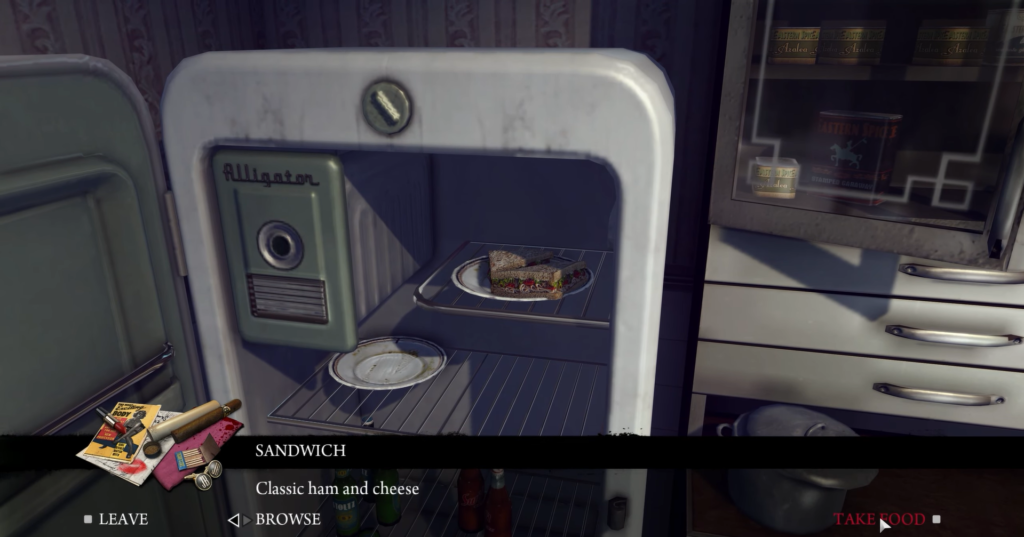 Вернитесь к дому Джо и припаркуйтесь в его гараже, а не на улице. Войдите через задний вход и поднимитесь на третий этаж. Возьмите сэндвич из холодильника на кухне, чтобы восстановить здоровье, а затем устройтесь на диване, чтобы закончить главу.