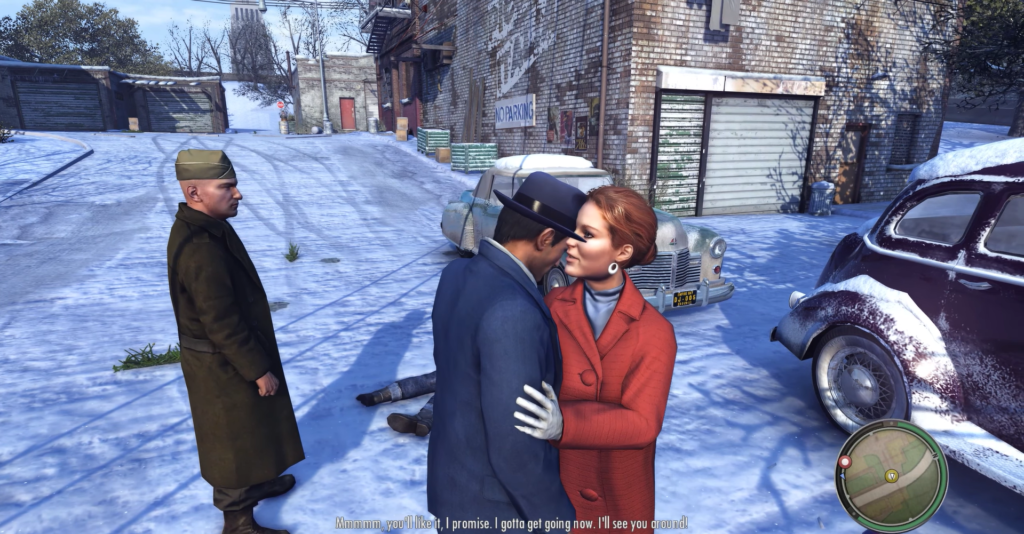 Джо отвозит вас на встречу с Джузеппе, фальшивомонетчиком, который может предоставить документы об увольнении, обещанные Джо. На парковке здания стоит автомобиль модели 1942 года в идеальном состоянии, который привлекает внимание обоих мужчин — деталь, которая через мгновение окажется очень важной.