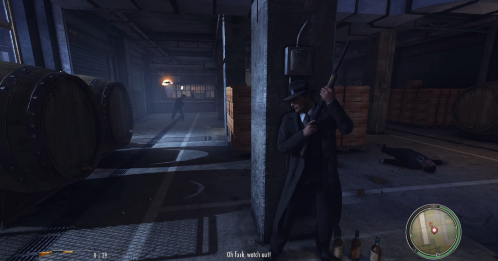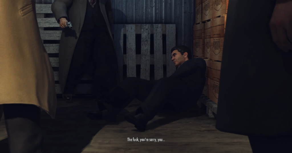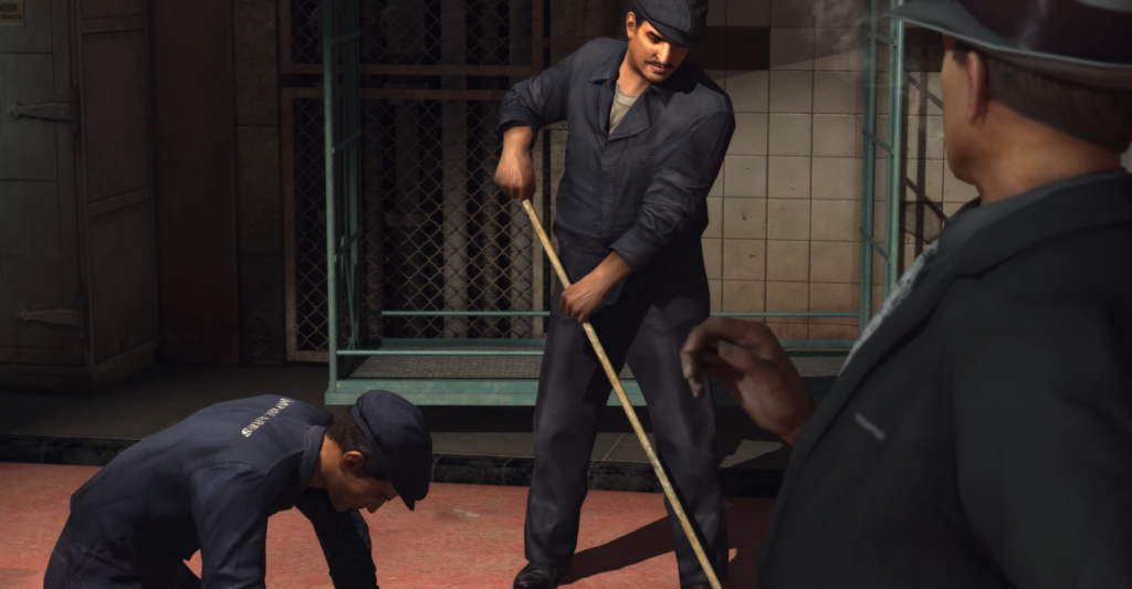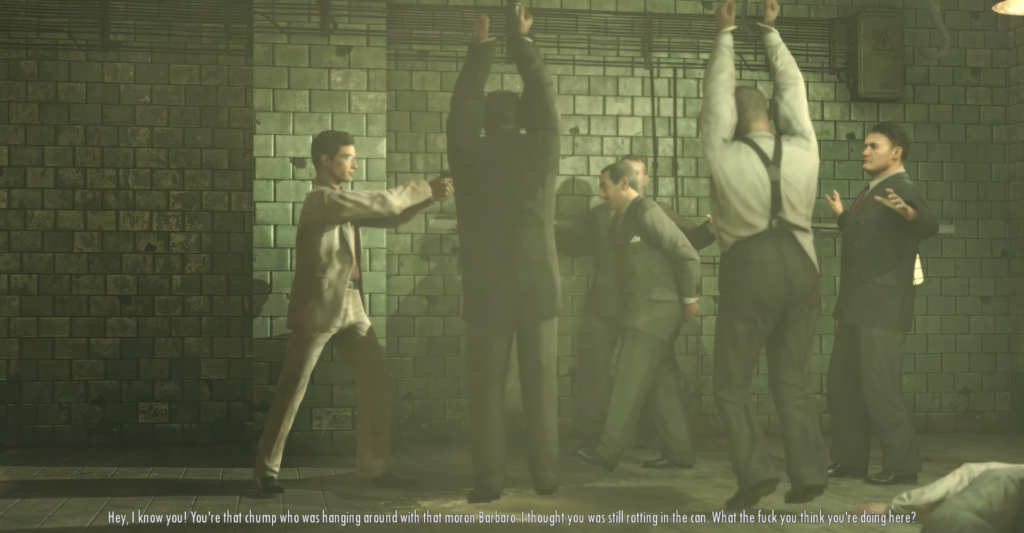 Винчи допрашивает их о недавних преступных действиях, но оба молчат. Они координируют свои действия, чтобы освободиться от оков. Джо нападает на охранника, пока Вито приходит в себя. Теперь вы управляете Вито во время побега.