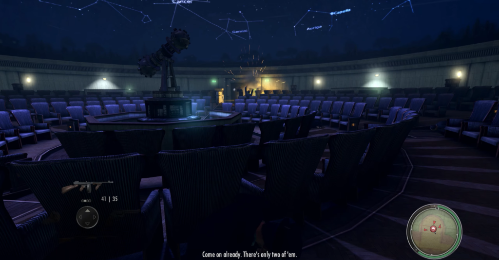Прибыть в указанное место за пределами обсерватории. Охранники Карло потребуют сдать оружие. Вито ответит стрельбой, и сразу же начнется штурм.