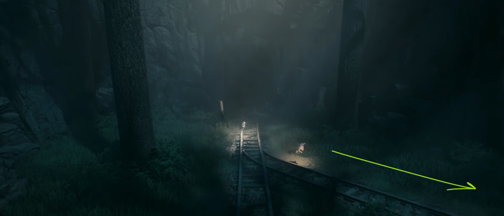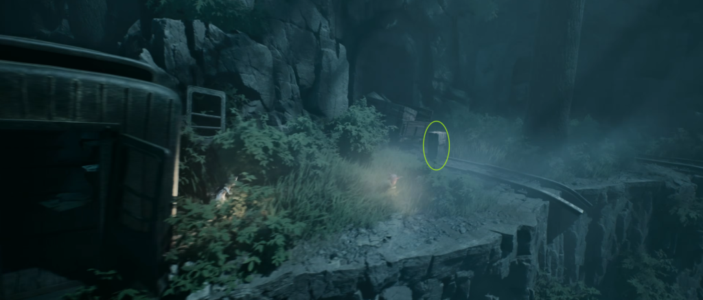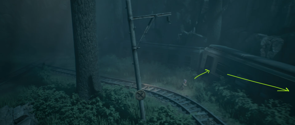 - Направляйтесь в правую часть локации. Ищите на окраине старый железнодорожный вагон.