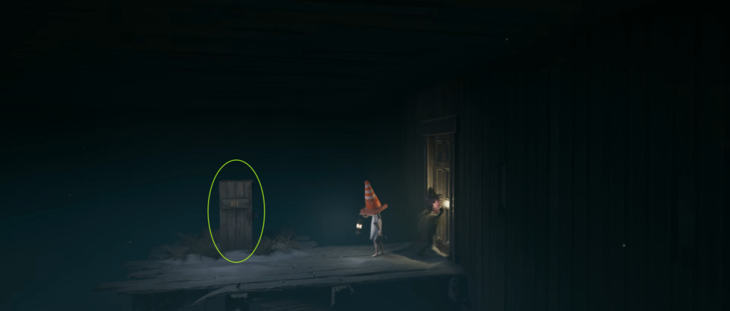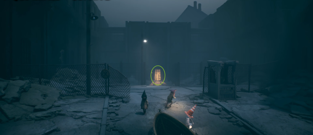 - Протиснитесь сквозь щель в хорошо освещенном заборе прямо по курсу.