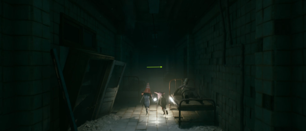 - Сбежав от напряженной погони в похожей на лабиринт больничной палате с ранеными солдатами, идите по коридору и заверните за угол.