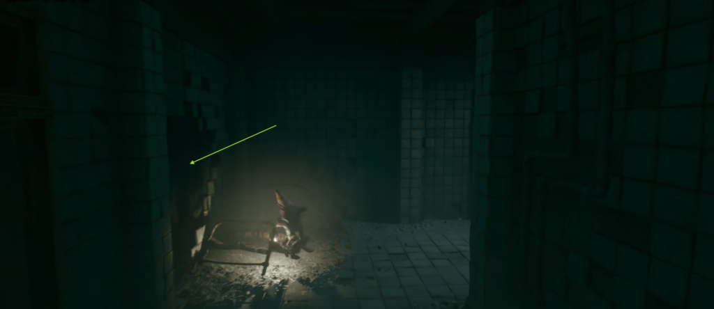 - Как только это случится, немедленно развернитесь и идите обратно к углу. Вы заметите, что от взрыва в стене рядом со старой больничной койкой образовалась дыра.