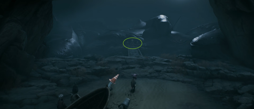 - Проплыв через него, вы окажетесь на скрытом пляже, усеянном трупами морских существ и китов.