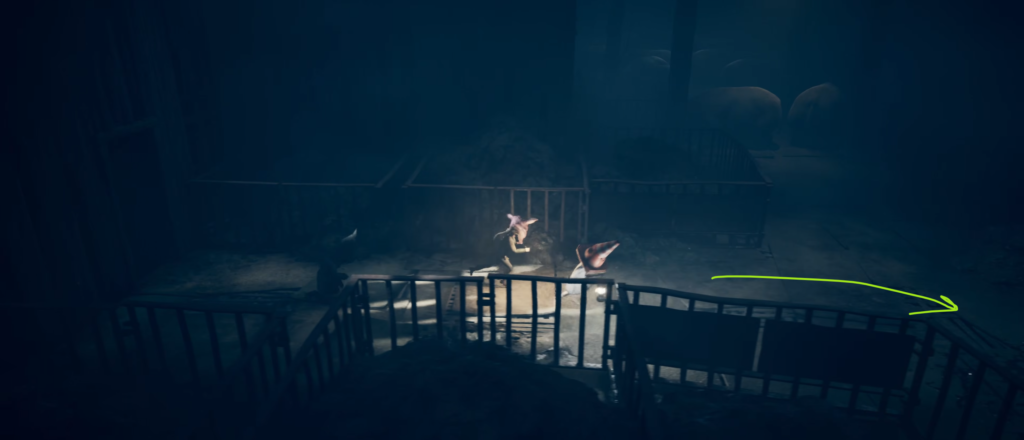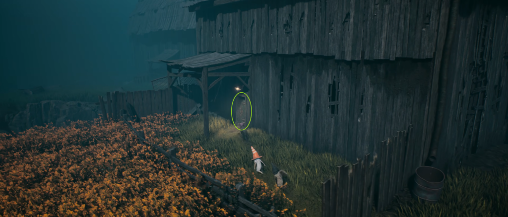 - Добравшись до жуткой локации со свинарником (Pig Barn), зайдите внутрь через главную левую дверь.