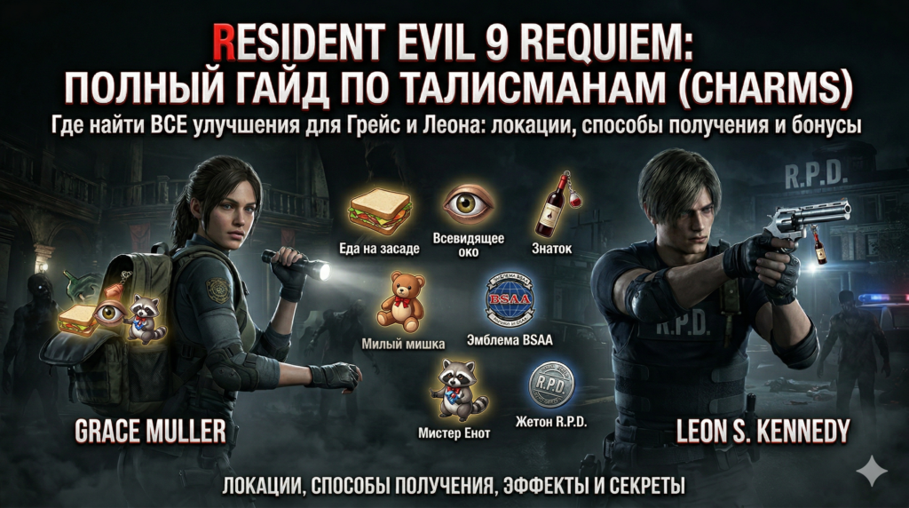 В этом руководстве мы подробно расскажем, где найти все талисманы в RE9 Requiem, как их разблокировать и какие бонусы они дают.