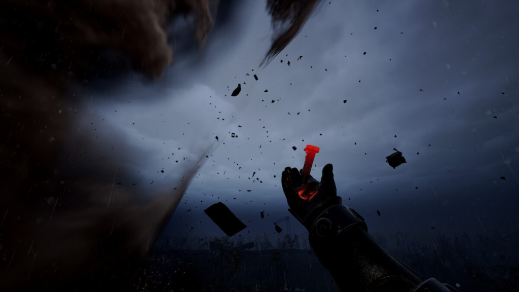 - Как получить: Залезьте на контейнеры, а с них переберитесь внутрь стрелы крана. Вам нужно позволить торнадо ударить по вам. В этот момент артефакт пролетит прямо перед вами — выхватывайте болт прямо из воздуха и моментально используйте аптечку, иначе вы умрете от урона.