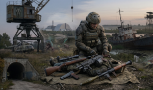 - Где найти: Отправляйтесь в Комплекс обслуживания железной дороги (Railway maintenance facility). Найдите здание, расположенное в правом нижнем (юго-восточном) углу территории комплекса. Заходите внутрь — винтовка SOFMOD просто лежит на столе и ждет вас. Никаких квестов для её получения выполнять не нужно.
