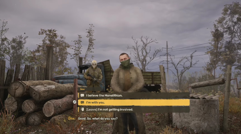 Чтобы успешно начать квест и встать на сторону сталкеров, вам нужно выбрать правильную реплику: