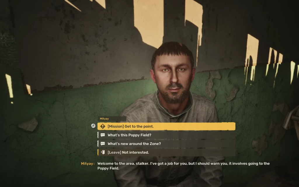 - Выполнить для него поручение (собрать различный лут на поле) в обмен на информацию.