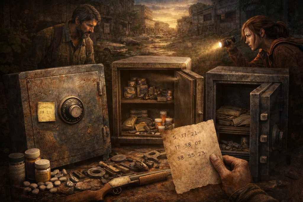 В игре The Last of Us Part 1 есть 4 сейфа, спрятанных по всей кампании. Для открытия каждого сейфа нужен цифровой код, который можно найти в записках или на предметах рядом с сейфом. В сейфах есть ценные награды, включая детали, добавки, боеприпасы и учебные пособия. Открыв все 4 сейфа, ты получишь достижение «Мастер ножей».